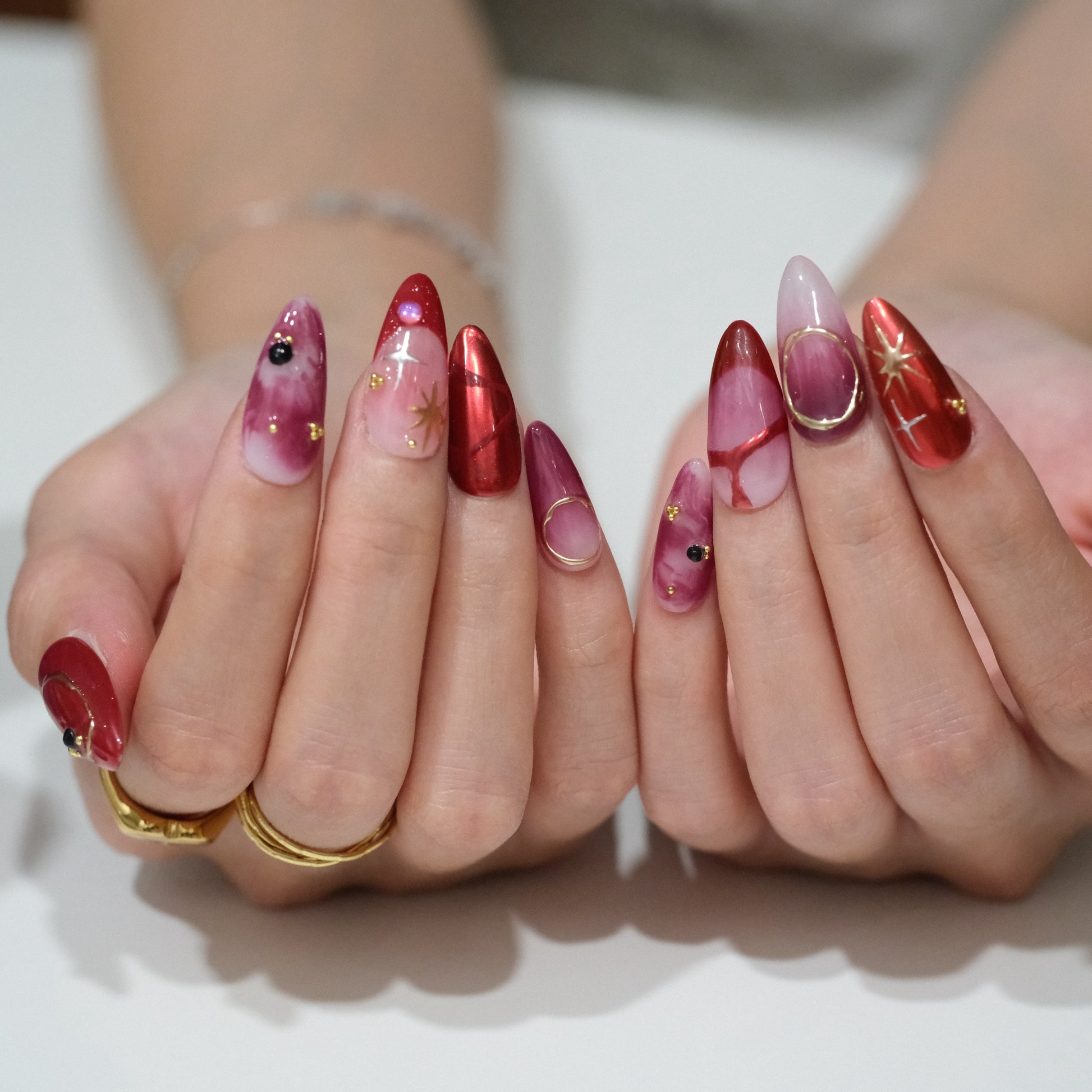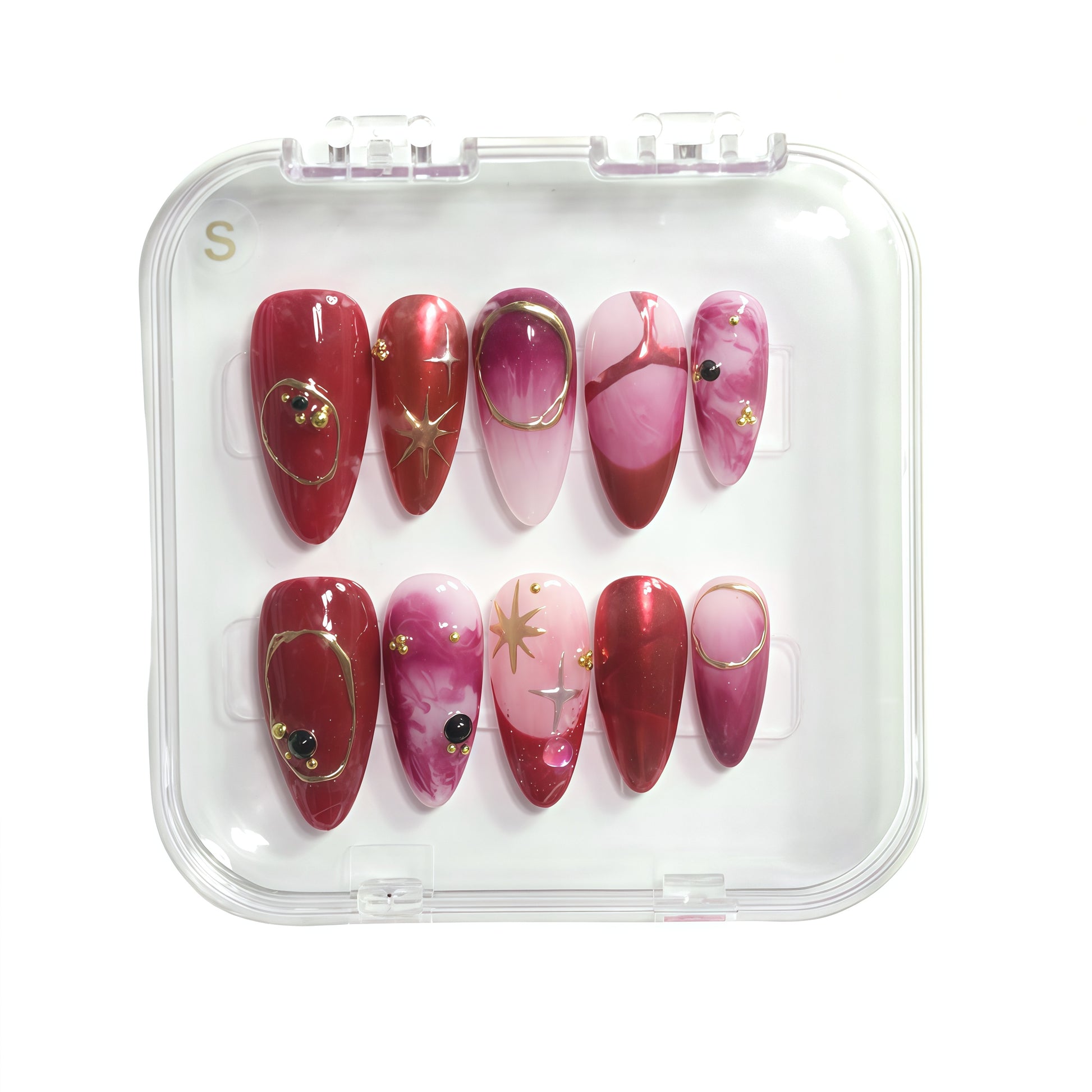 Every set comes with a FREE Toolkit includes: acrylic nail case and all complimentary tools necessary for wearing the design - sticky tabs x 24 pcs in 12 sizes, cuticle tool x 1, dehydrating wipe x 1, nail file x 1