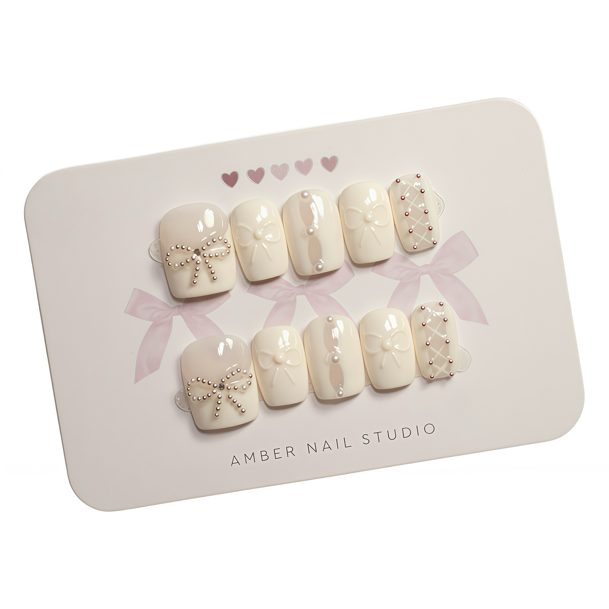 The Ribbon Bow Collection is all about playful charm. Featuring handcrafted press-on nails with 3D bows, these designs bring a cute, trendy look that’s made to stand out. With bows being a viral hit on social media, this collection lets you capture that fun, stylish vibe effortlessly. Perfect for adding a chic twist to any outfit.
