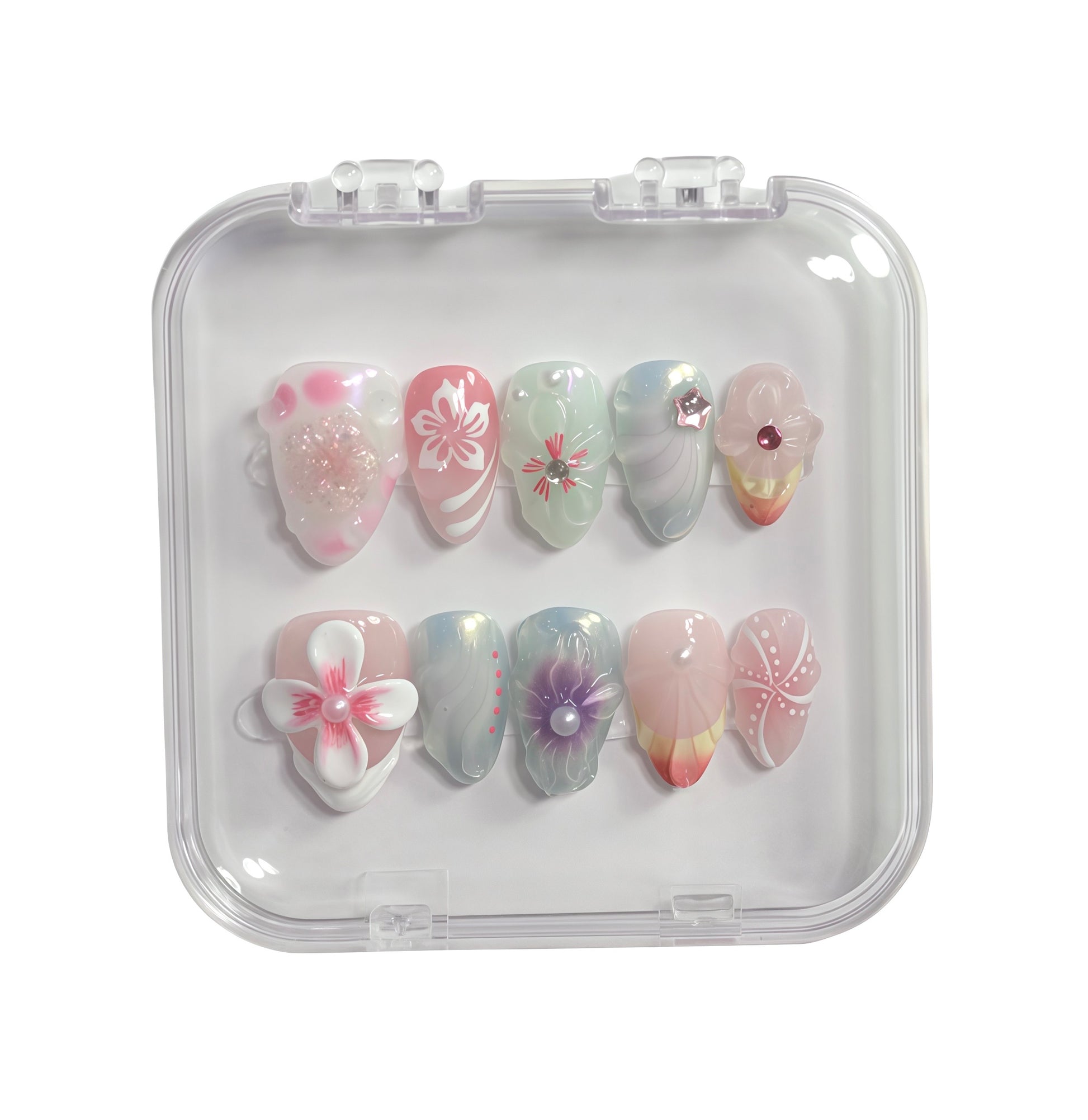 Every set comes with a FREE Toolkit includes: acrylic nail case and all complimentary tools necessary for wearing the design - sticky tabs x 24 pcs in 12 sizes, cuticle tool x 1, dehydrating wipe x 1, nail file x 1