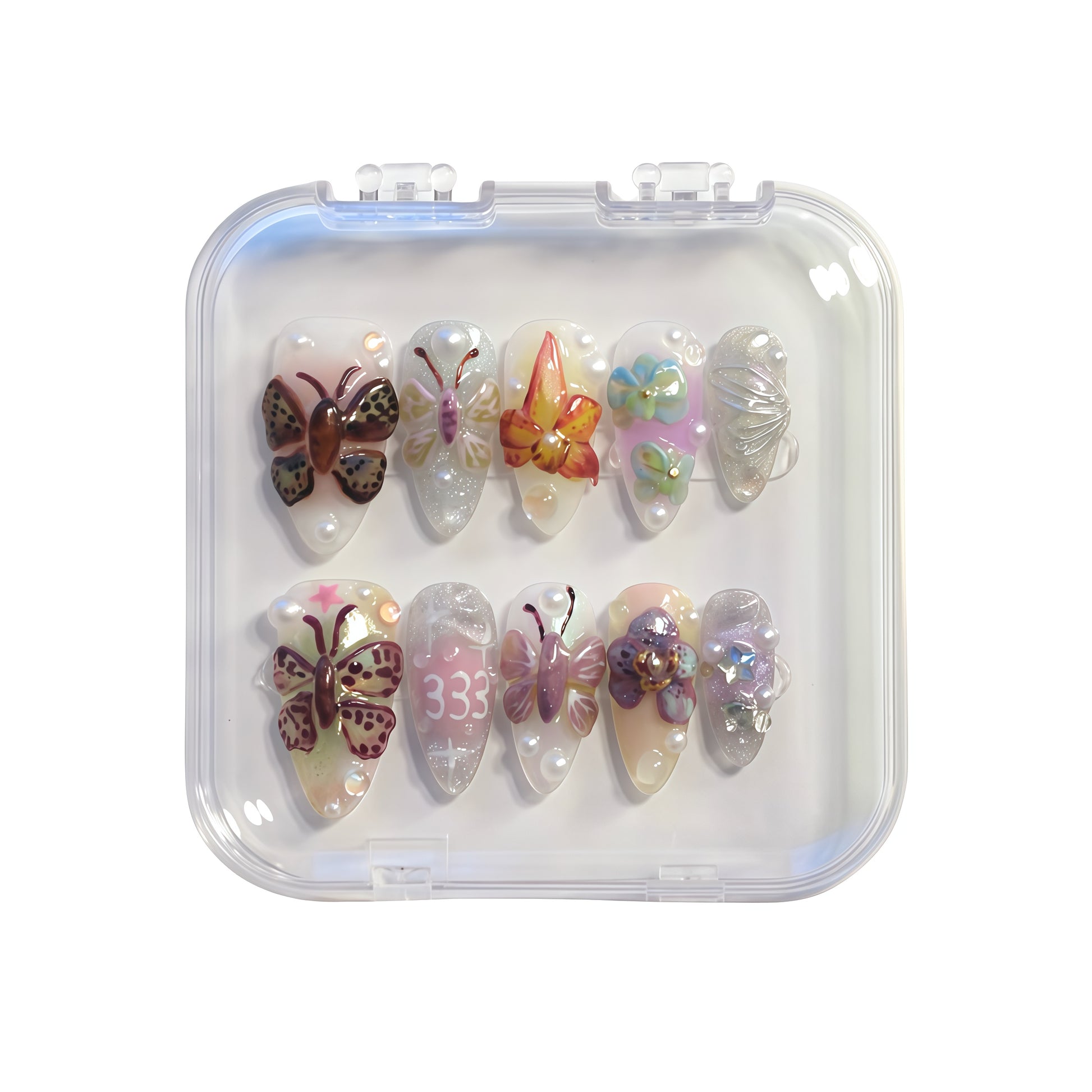 Every set comes with a FREE Toolkit includes: acrylic nail case and all complimentary tools necessary for wearing the design - sticky tabs x 24 pcs in 12 sizes, cuticle tool x 1, dehydrating wipe x 1, nail file x 1