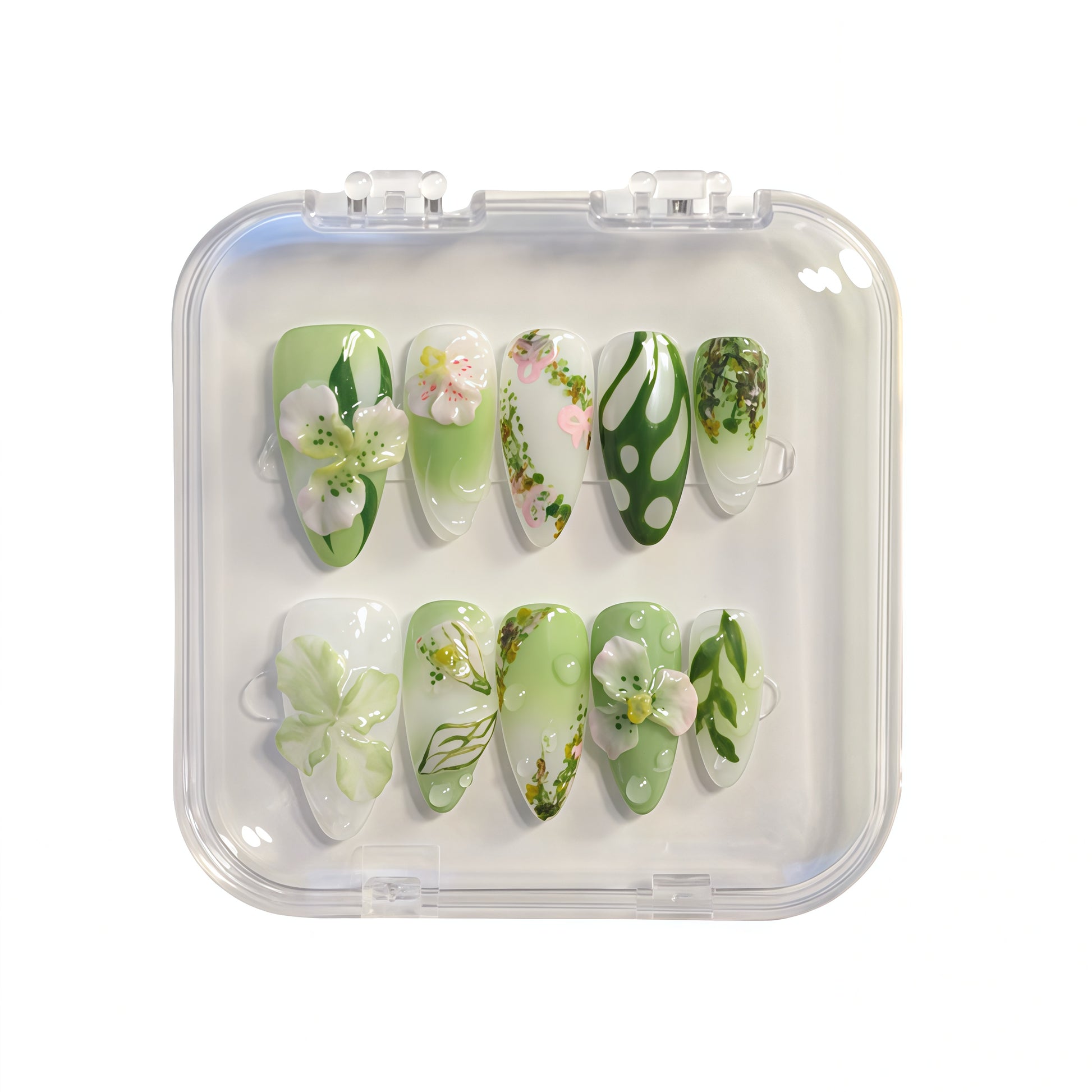 Every set comes with a FREE Toolkit includes: acrylic nail case and all complimentary tools necessary for wearing the design - sticky tabs x 24 pcs in 12 sizes, cuticle tool x 1, dehydrating wipe x 1, nail file x 1