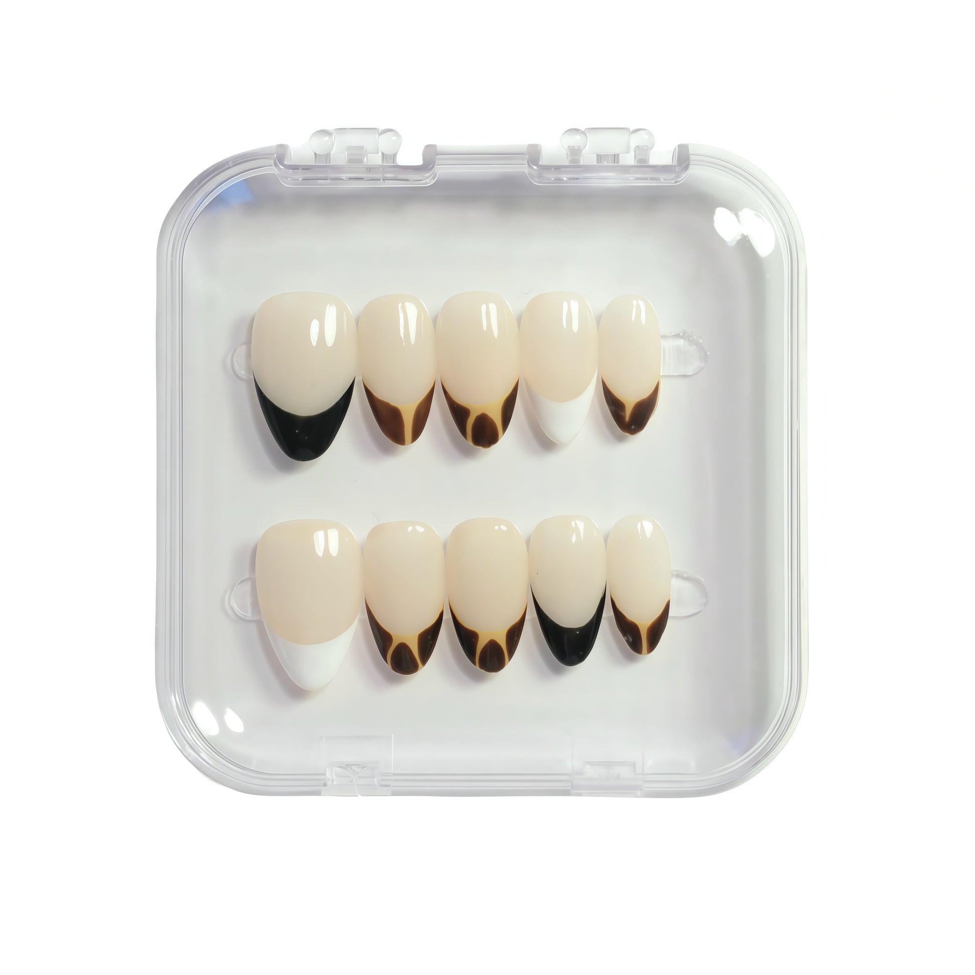 Every set comes with a FREE Toolkit includes: acrylic nail case and all complimentary tools necessary for wearing the design - sticky tabs x 24 pcs in 12 sizes, cuticle tool x 1, dehydrating wipe x 1, nail file x 1
