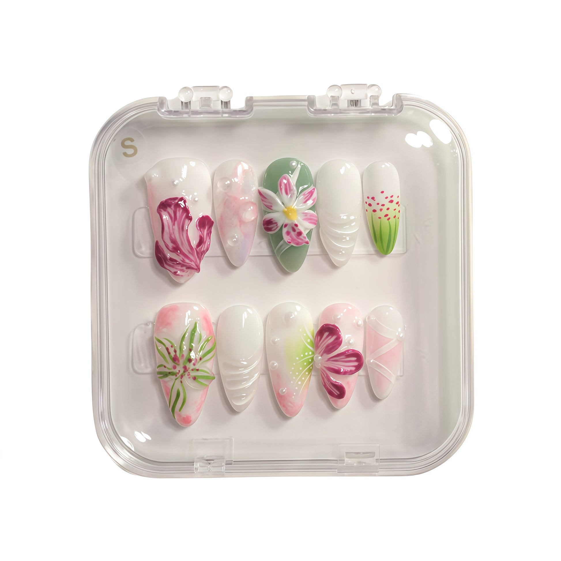 Every set comes with a FREE Toolkit includes: acrylic nail case and all complimentary tools necessary for wearing the design - sticky tabs x 24 pcs in 12 sizes, cuticle tool x 1, dehydrating wipe x 1, nail file x 1