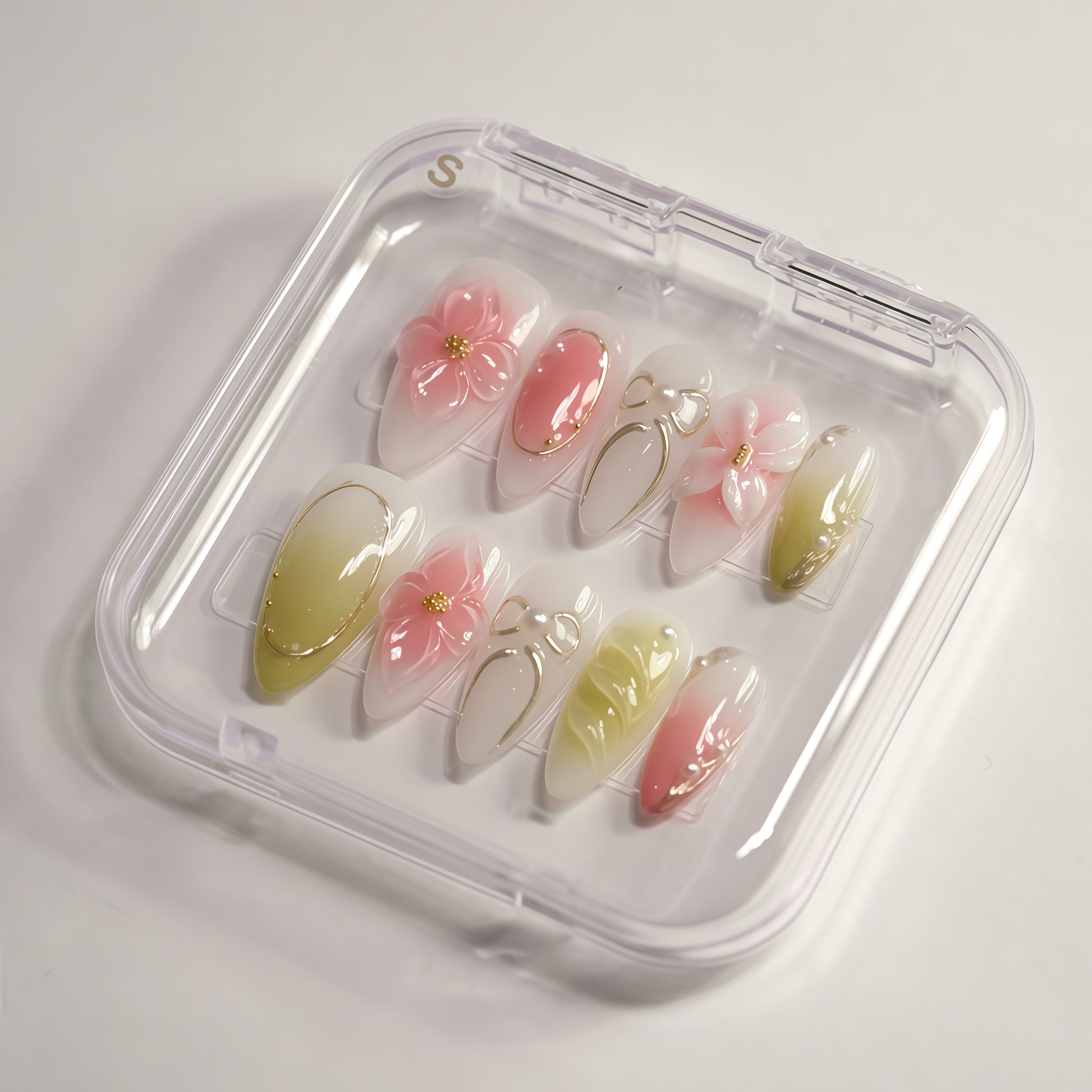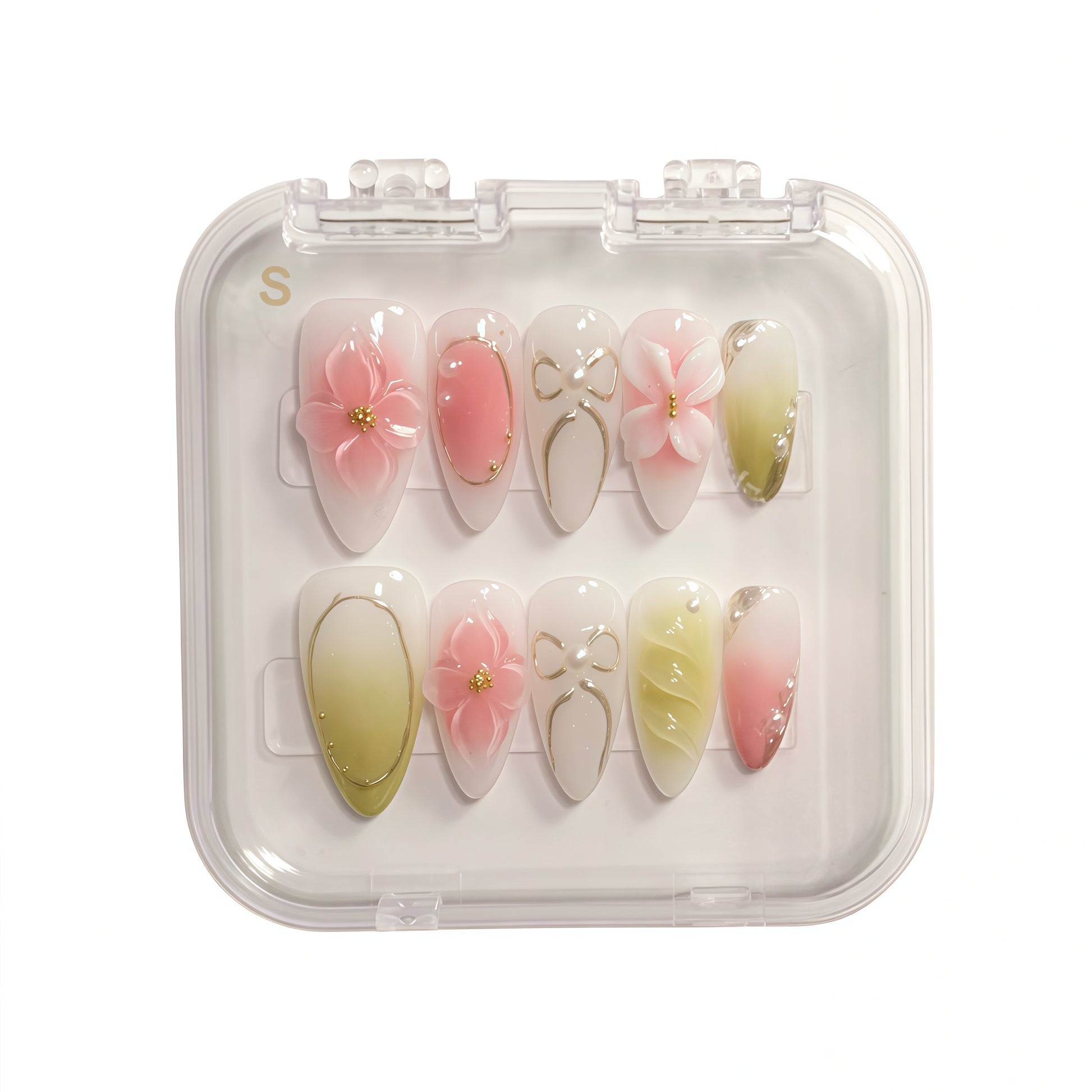 Every set comes with a FREE Toolkit includes: acrylic nail case and all complimentary tools necessary for wearing the design - sticky tabs x 24 pcs in 12 sizes, cuticle tool x 1, dehydrating wipe x 1, nail file x 1