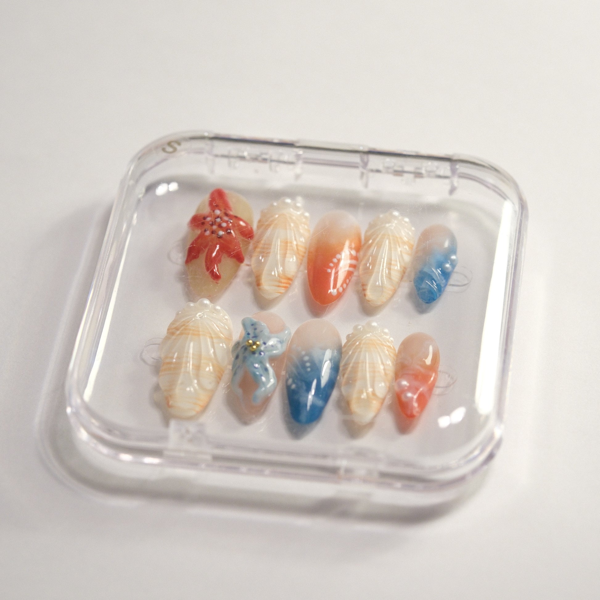 "the florist" captures the beauty of nature with handcrafted press-on nails featuring 3D handmade floral designs. Each set showcases unique, sculpted flowers in a variety of colors, bringing the charm of a blooming garden to your fingertips. Perfect for special occasions or everyday elegance, these nails offer a touch of floral artistry to elevate your style.