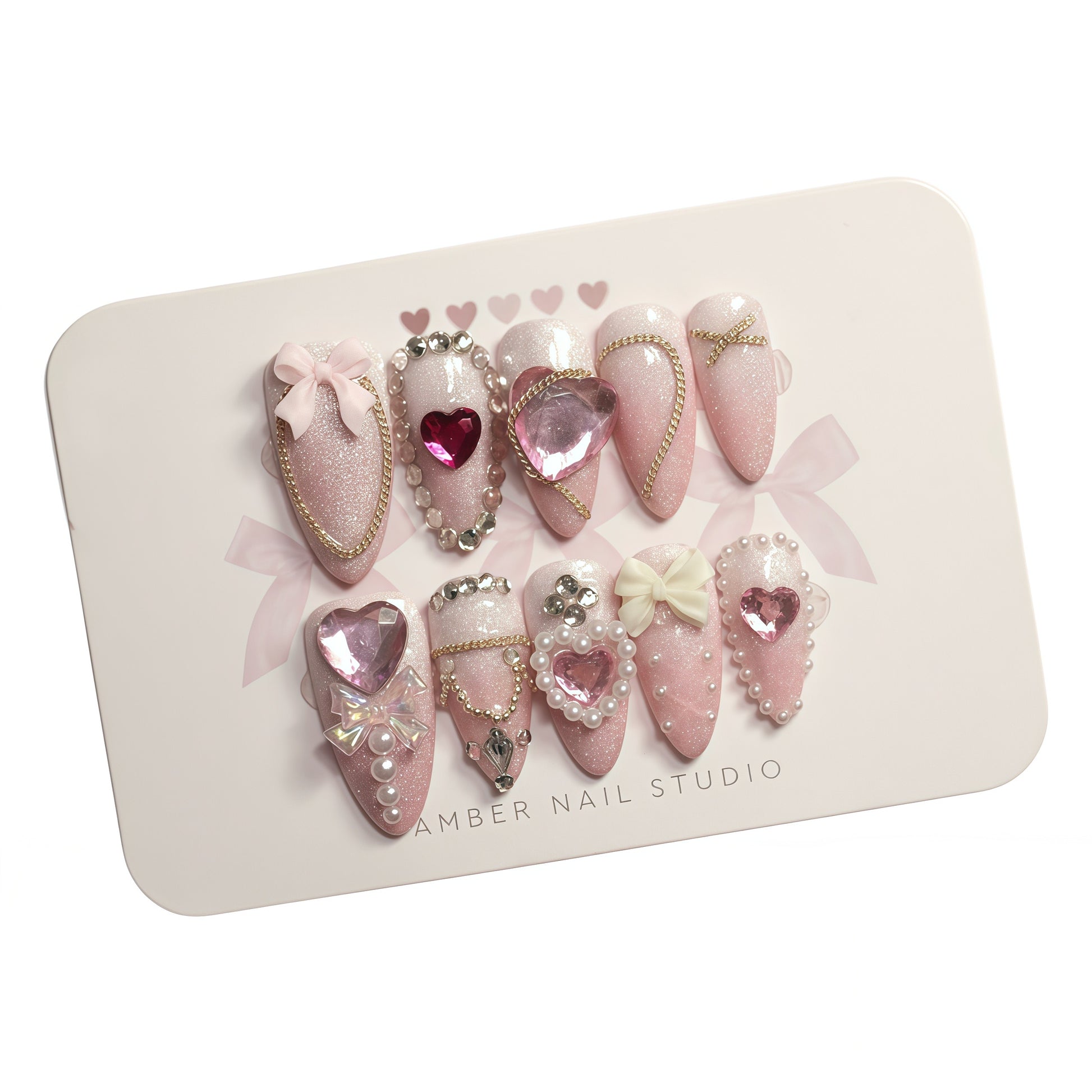 The Ribbon Bow Collection is all about playful charm. Featuring handcrafted press-on nails with 3D bows, these designs bring a cute, trendy look that’s made to stand out. With bows being a viral hit on social media, this collection lets you capture that fun, stylish vibe effortlessly. Perfect for adding a chic twist to any outfit.